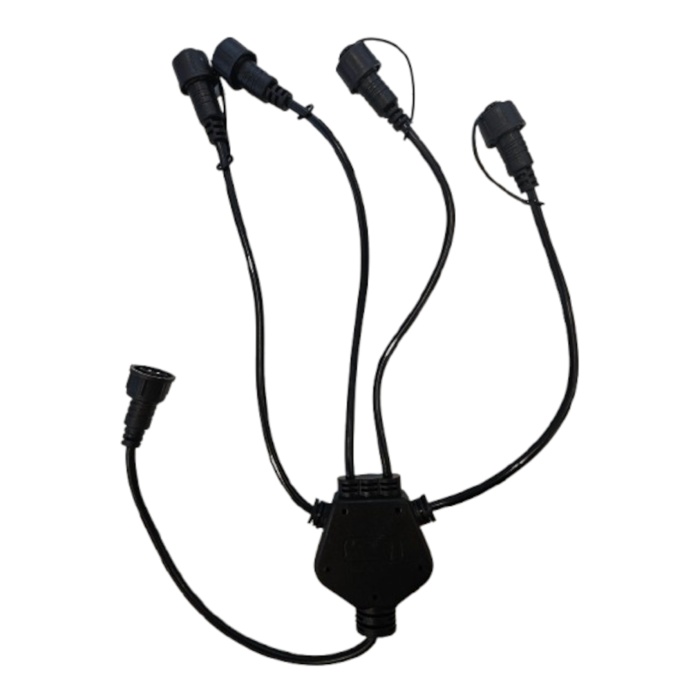 Der Lichterketten Splitter 1 to 4 ermöglicht es, eine einzelne Lichterkette an vier separate Stränge weiterzuleiten. So kannst du mit nur einem Anschluss mehrere Bereiche gleichzeitig beleuchten – ganz ohne komplizierte Verkabelung.